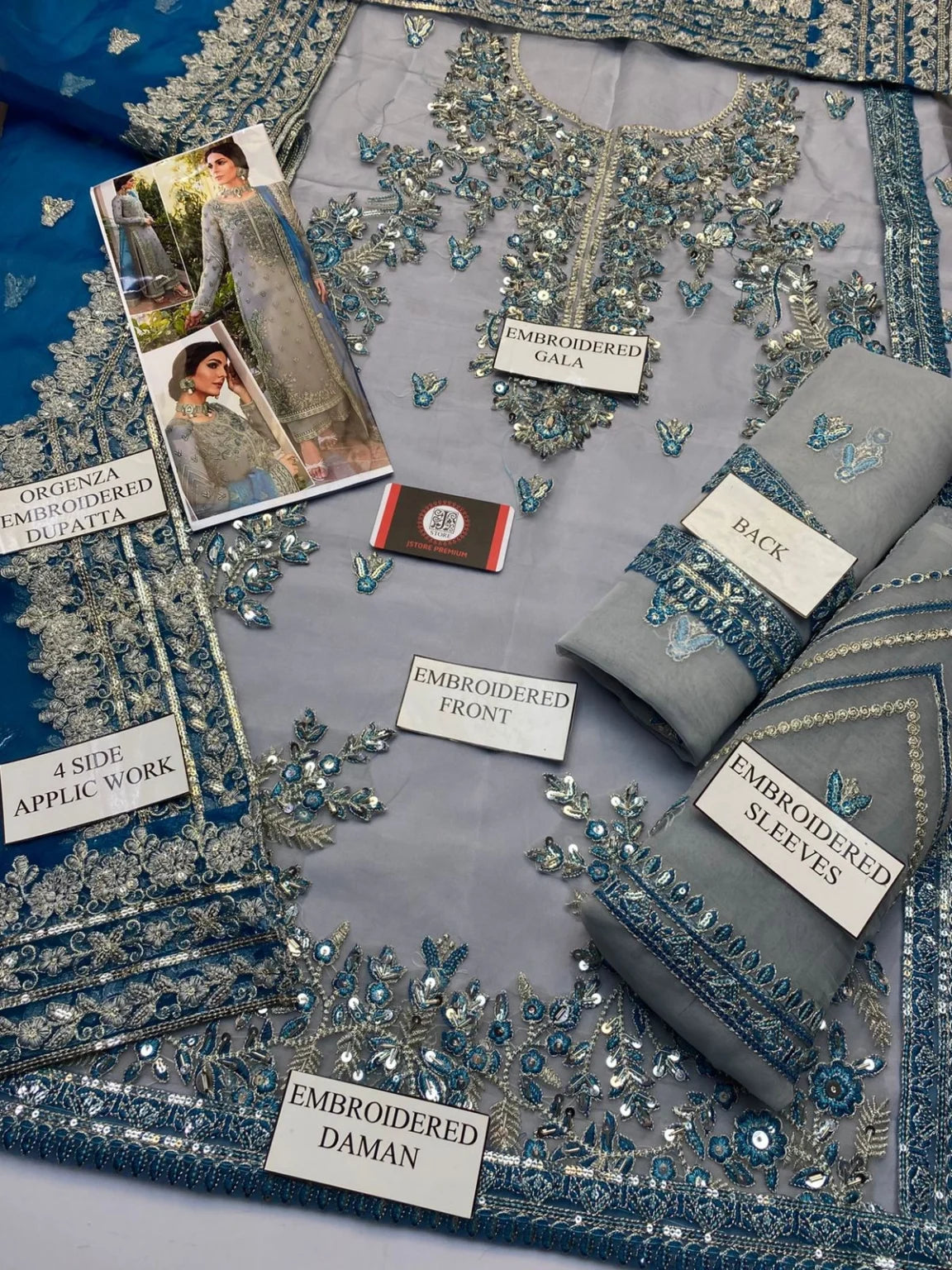 BRAND AKBAR ASLAM organza embroidered sequence moti work formal unstitched 3pc