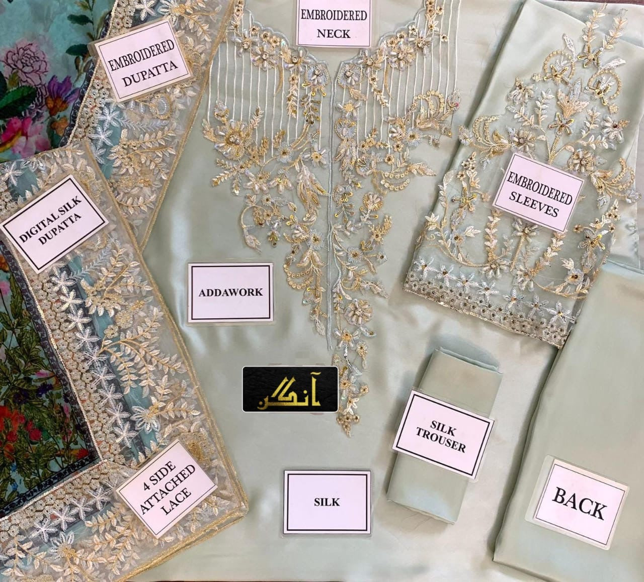 AZURE shamooz silk embroidered & adda work luxury unstiched 3pc✓