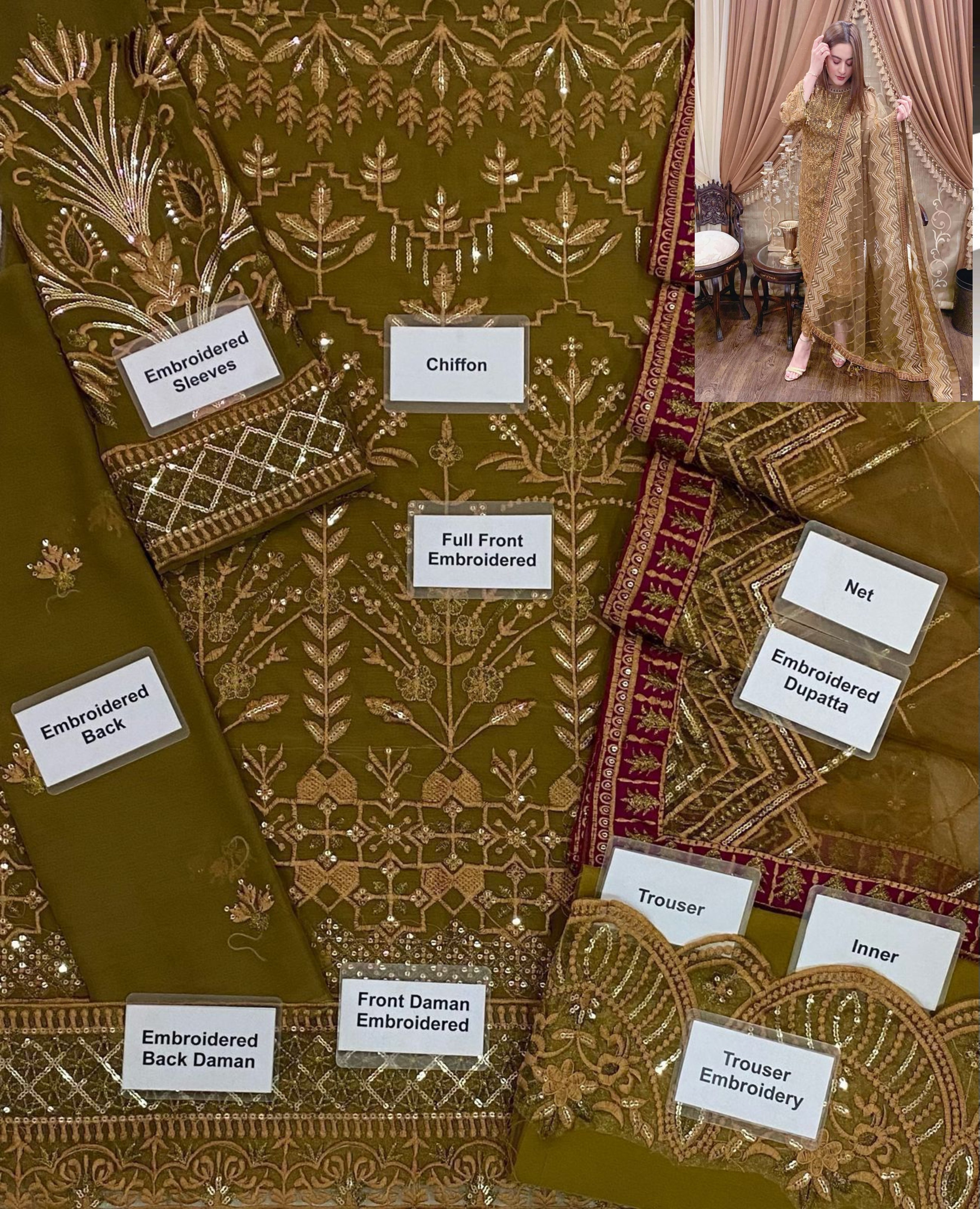 BAROQUE CHIFFON WEDDING UNSTICHED 3PC
