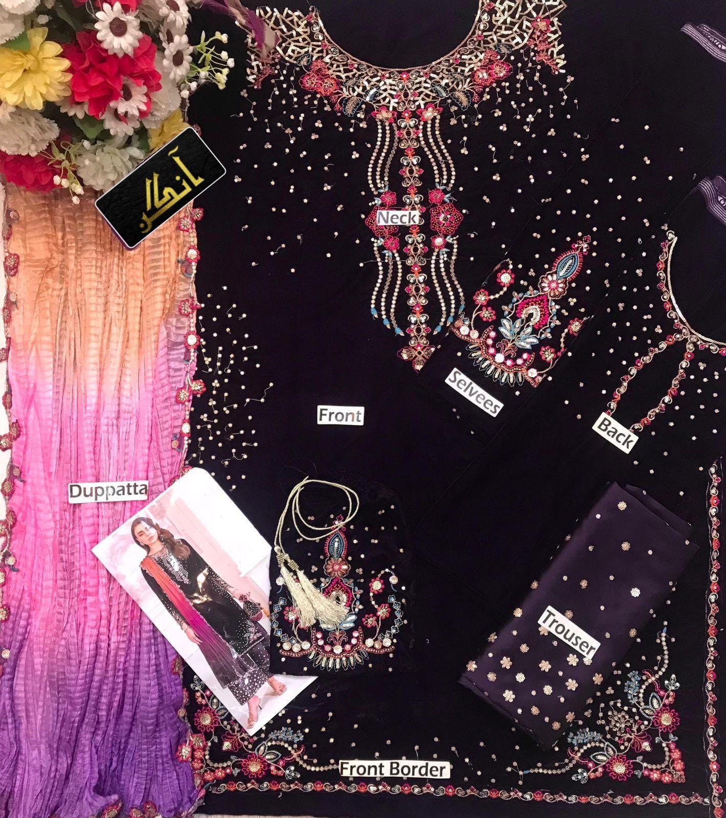 BRAND BAROQUE velvet embroidered sequence hand embellished luxury unstitched 3pc