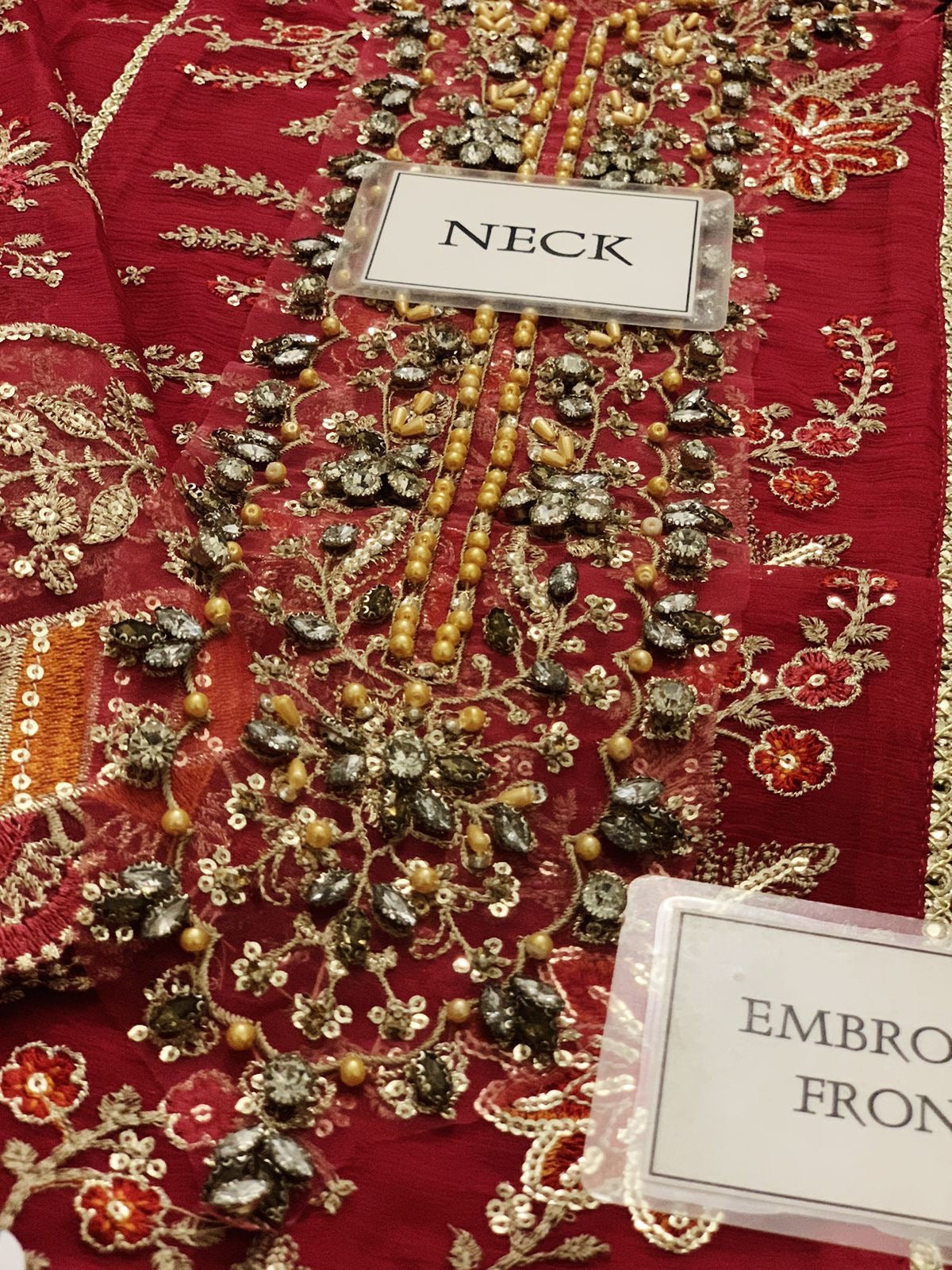 *Semi pure chiffon fully heavy embroidered spengle work centre panel with heavy embroidered spengle work neckline with heavy hand emblishment adha work with heavy embroidered spengle work daman boarder*