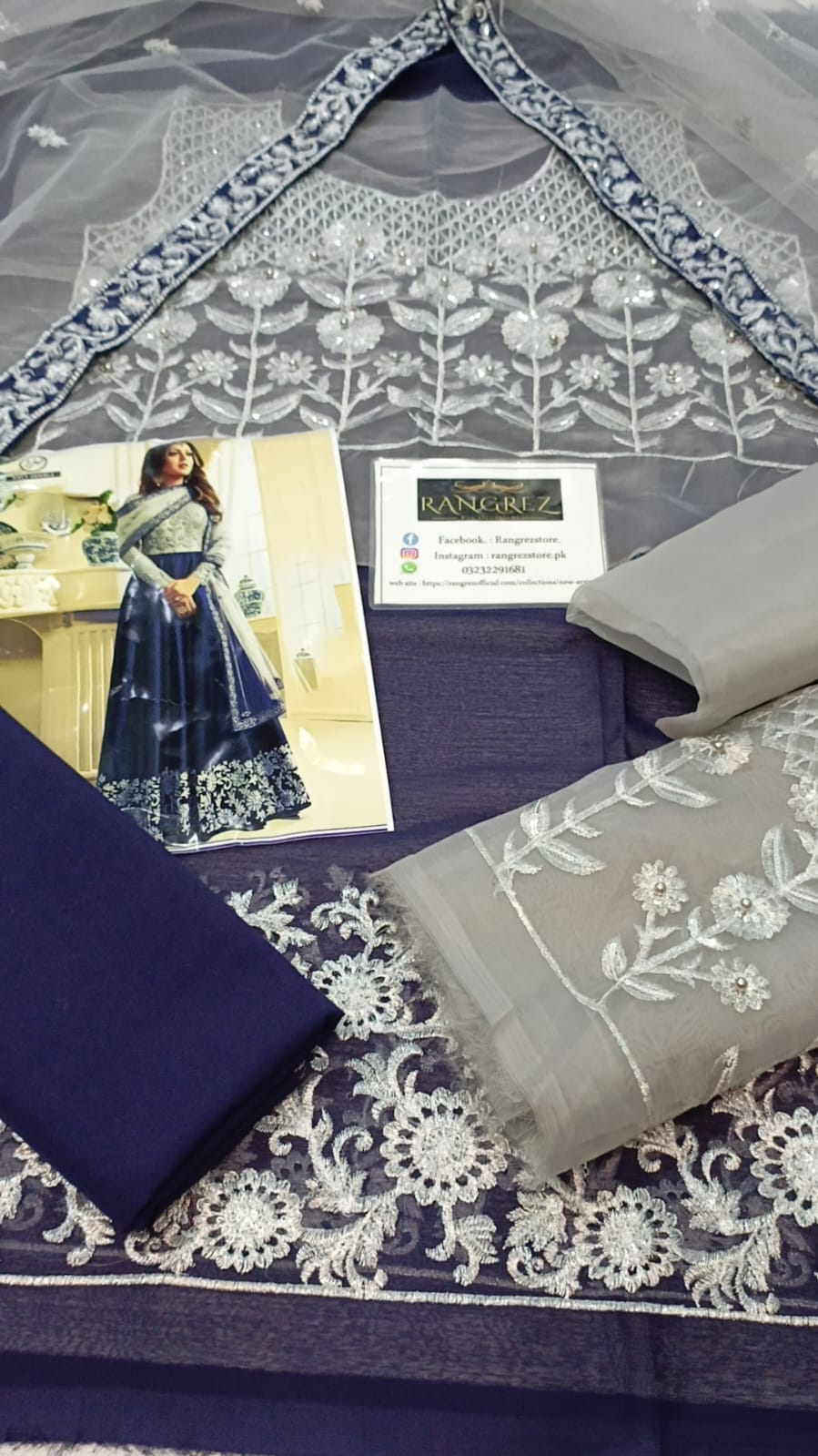 IMROZI net masoori & chiffon emb unstitced 3pc