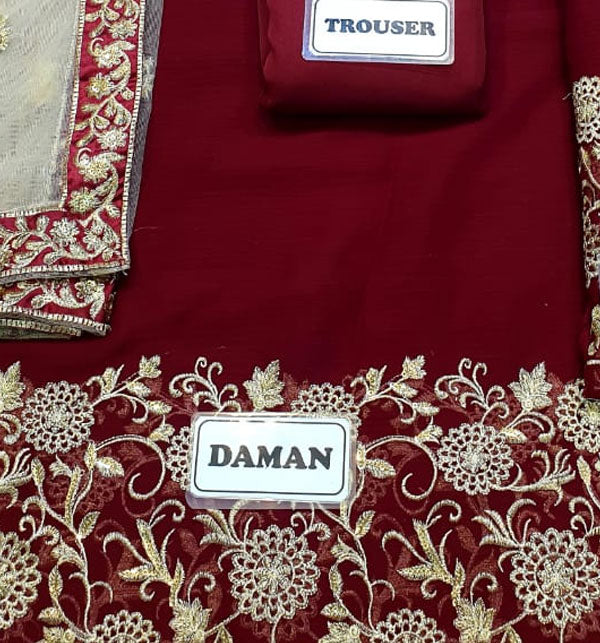 IMROZI net masoori & chiffon emb unstitced 3pc