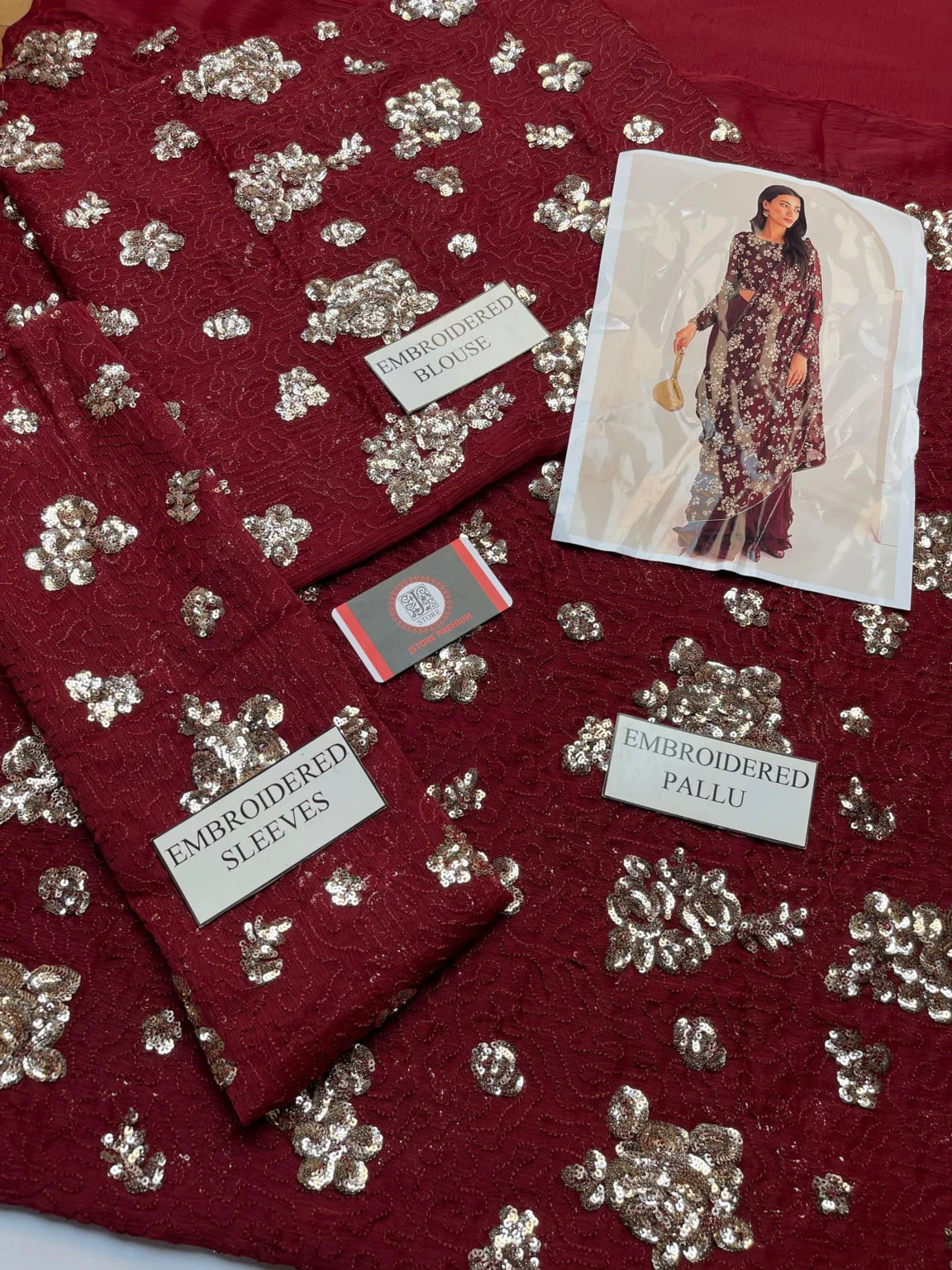 JAZMIN saree chiffon embroidered sequence luxury unstitched 3pc