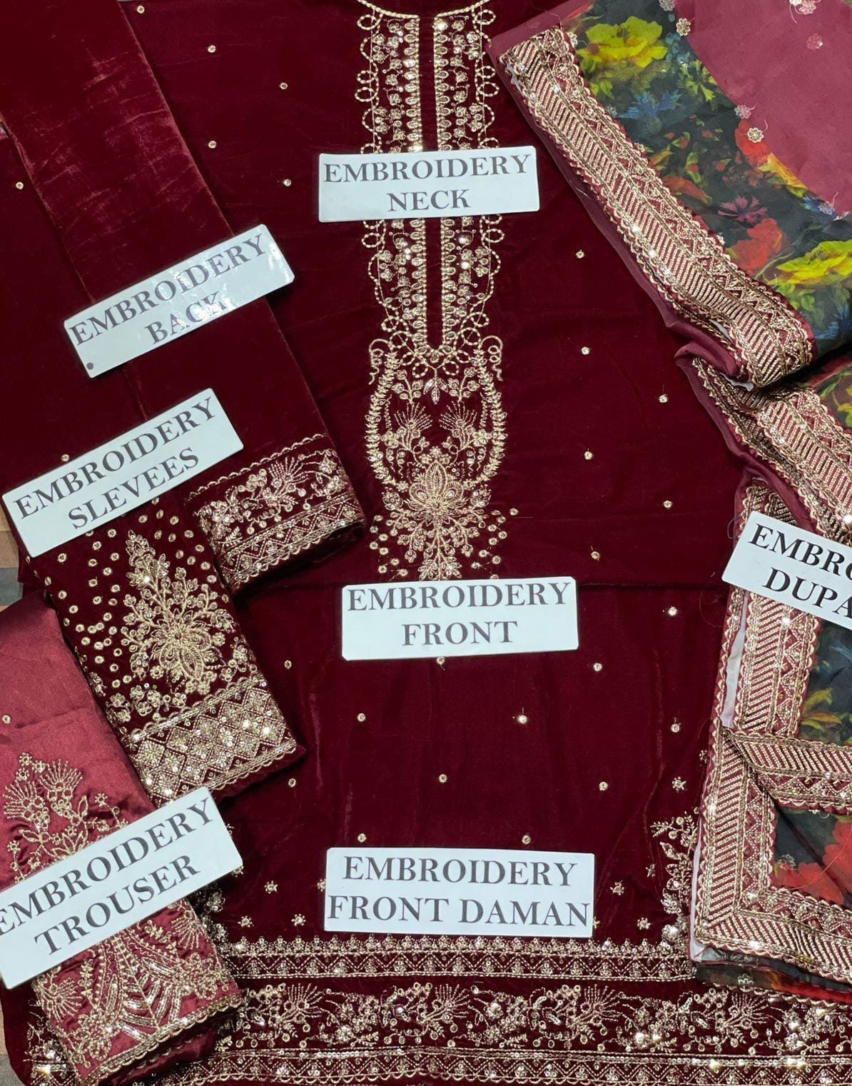 JAZMIN velvet embroidered luxury unstitched 3pc✓